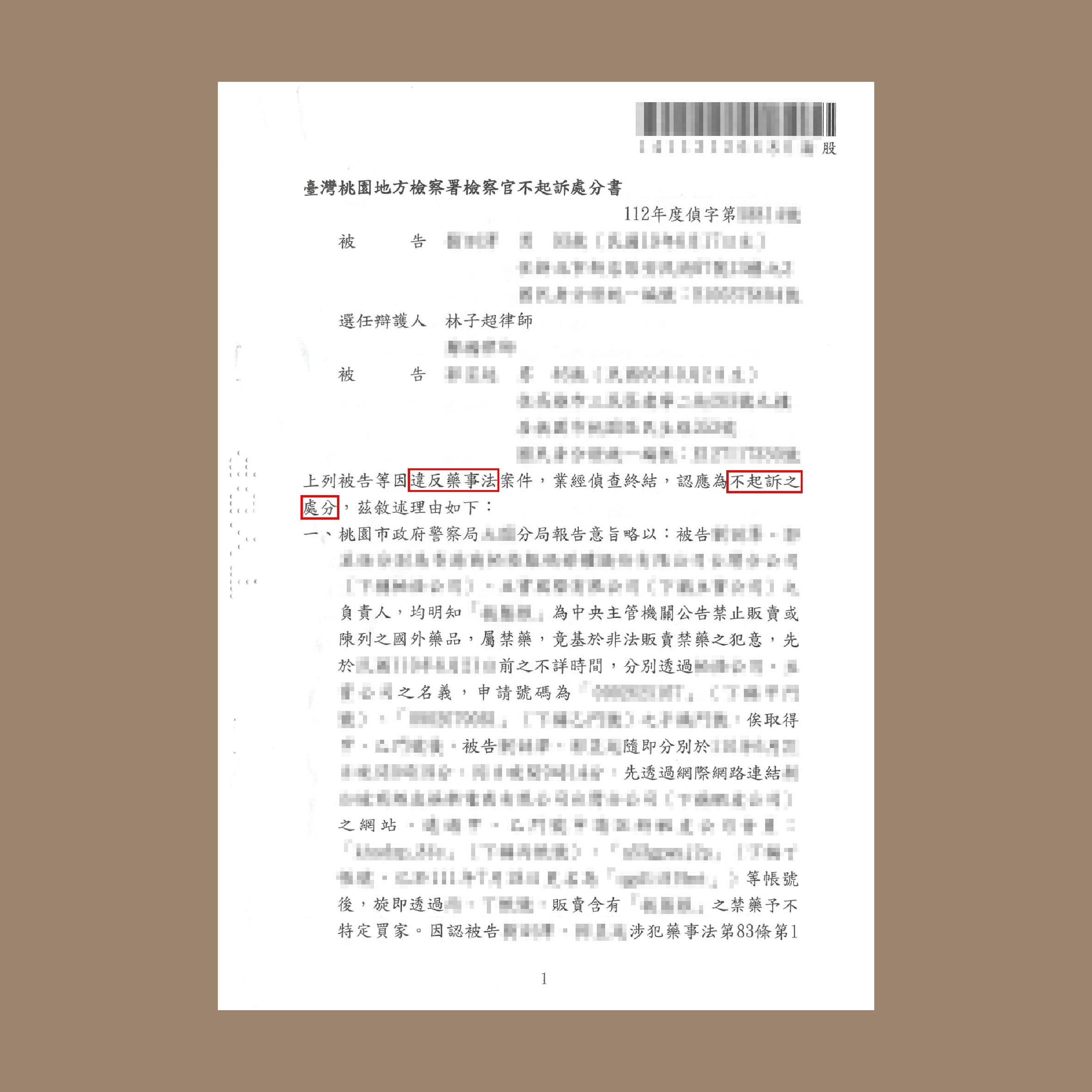 藥事法 – 不起訴刑事事件 林子超律師2026 年 1 月 15 日刑事事件 首頁 勝訴案例 刑事事件 藥事法 – 不起訴 113-06-04 當事人經營公司事業,遭不明人士利用公司名義於網路上販賣禁藥,涉及違反藥事法罪嫌。經本所林子超律師協助辯護,解釋並證明冒名販賣禁藥與當事人無關,成功取得不起訴處分。